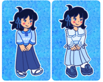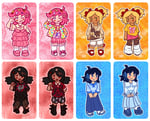 Set of 8 fashion pocas with alternating outfits featuring all four characters, Sailor, Mira, Amaya, and Aika.